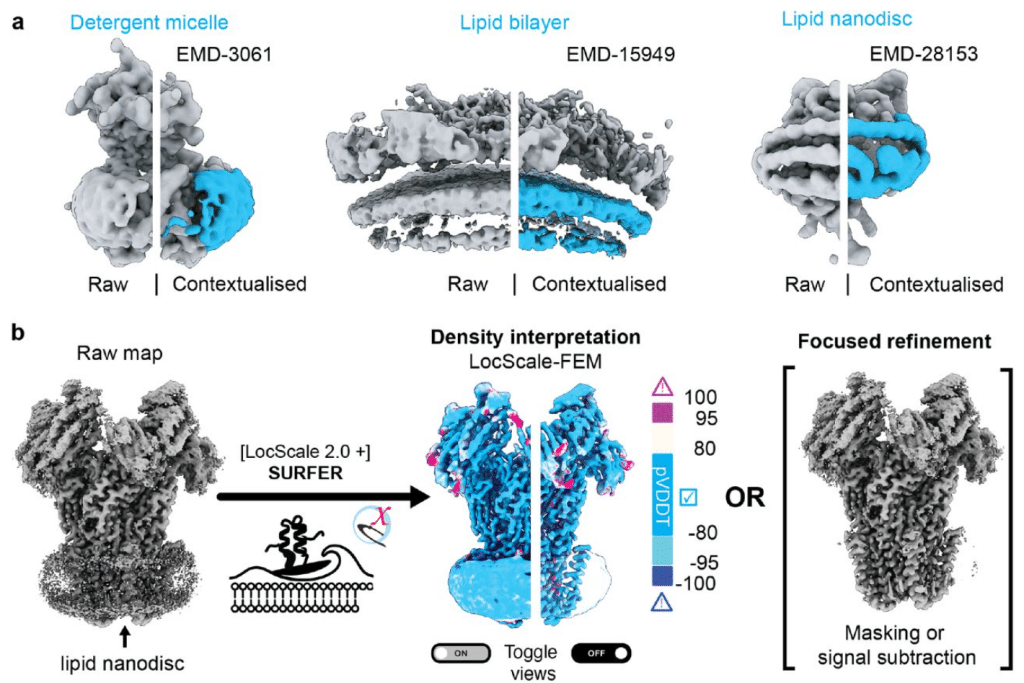 Interactive segmentation of membrane and membrane mimic densities in cryo-EM maps